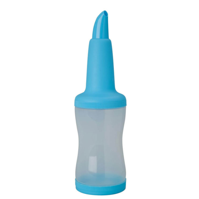 1 litre plastic pourer in the colour blue.
