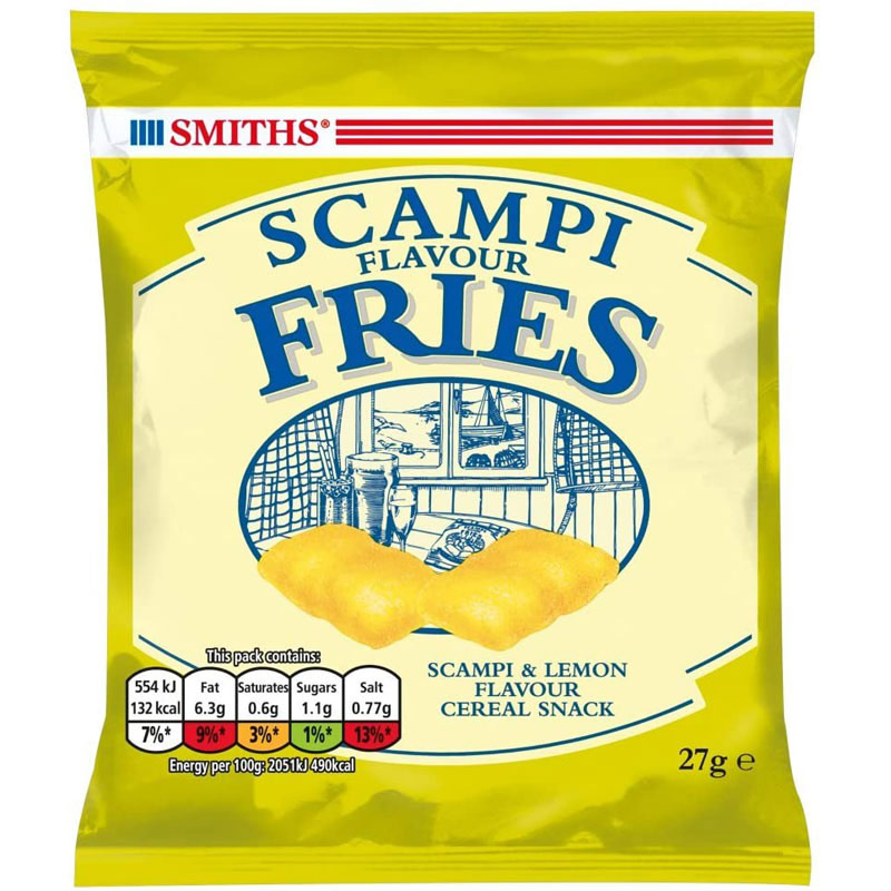 A delicious savoury snack, made from only the finest ingredients. A mainstay of the British pub, these tasty nibbles remain a huge favourite. A classic Smith's snack. Zesty Scampi flavoured and full of taste.